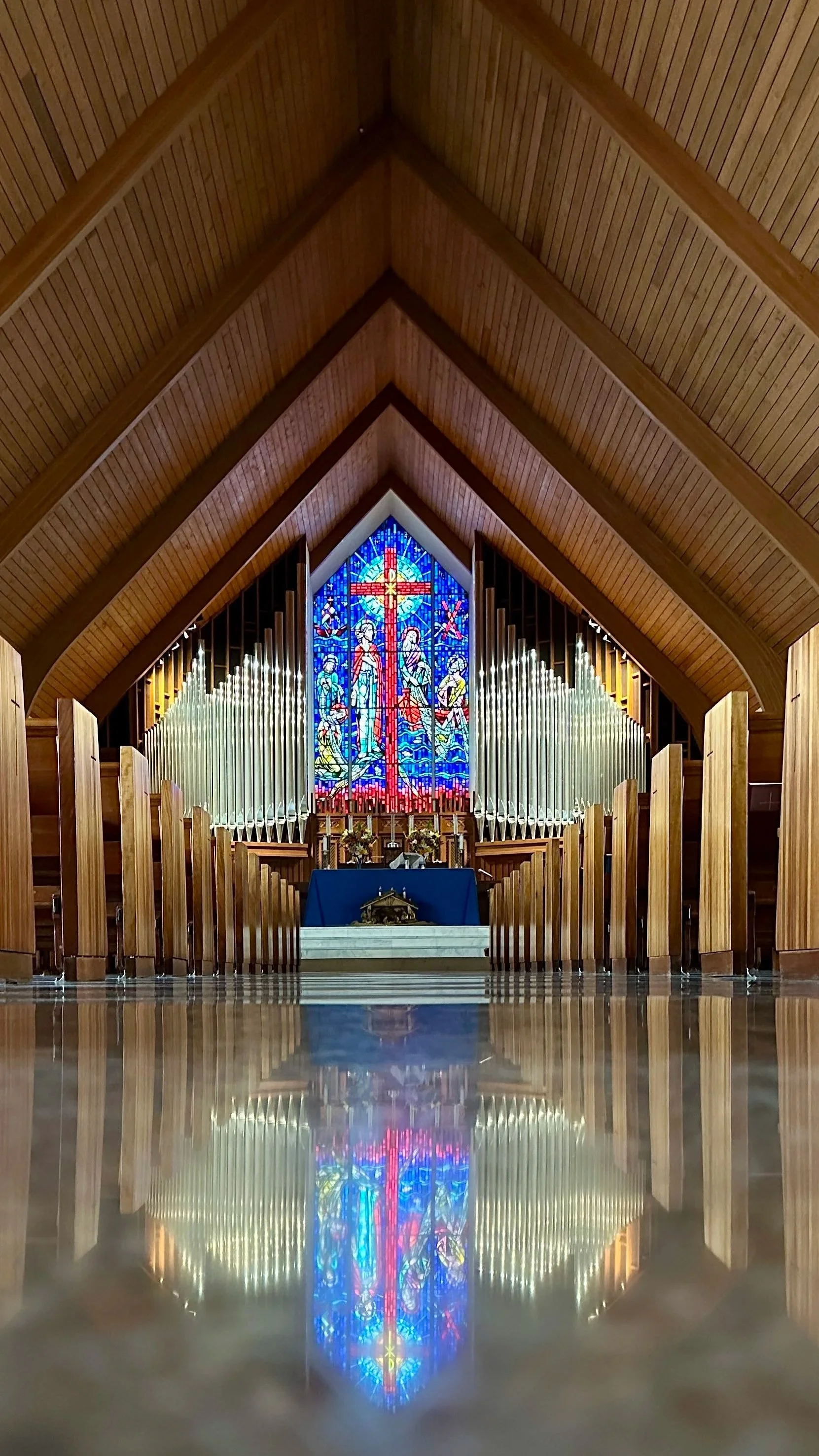 In early 2022, a new pipe organ was installed, custom designed for St. Andrew’s Episcopal Church. The instrument has 38 ranks (plus 9 digital) and is controlled by a 3 manual console. The organ is designed to support the worship and choral traditions of the congregation, but has been designed to accommodate wide body of organ literature from many styles and periods. Behind the visible pipes, are 2,147 additional pipes with numerous wind-chests, reservoirs, expression shades, and other components that make up this custom instrument. While most of the organ is new, some pipes from our older instrument were retained and rebuilt to celebrate the stewardship gifts that provided the original pipe organ of St. Andrew’s.